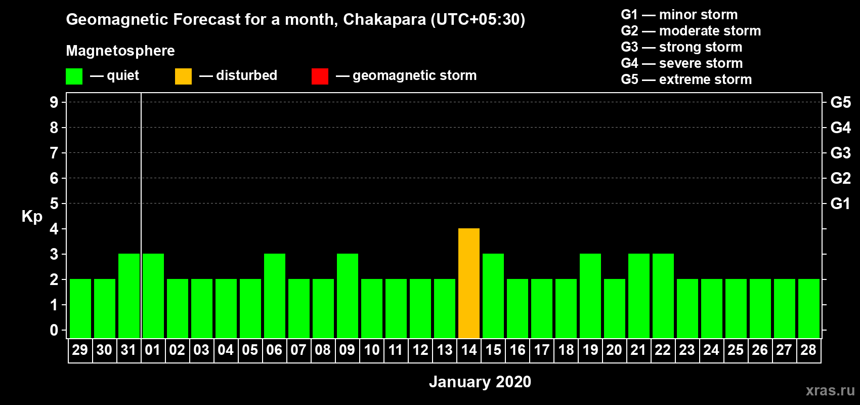 Geomagnetic storm forecast in Chakapara for Dec 29, 2019