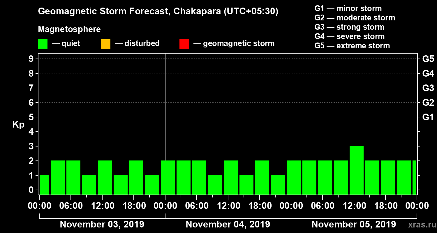 Geomagnetic storm forecast in Chakapara for Nov 03, 2019