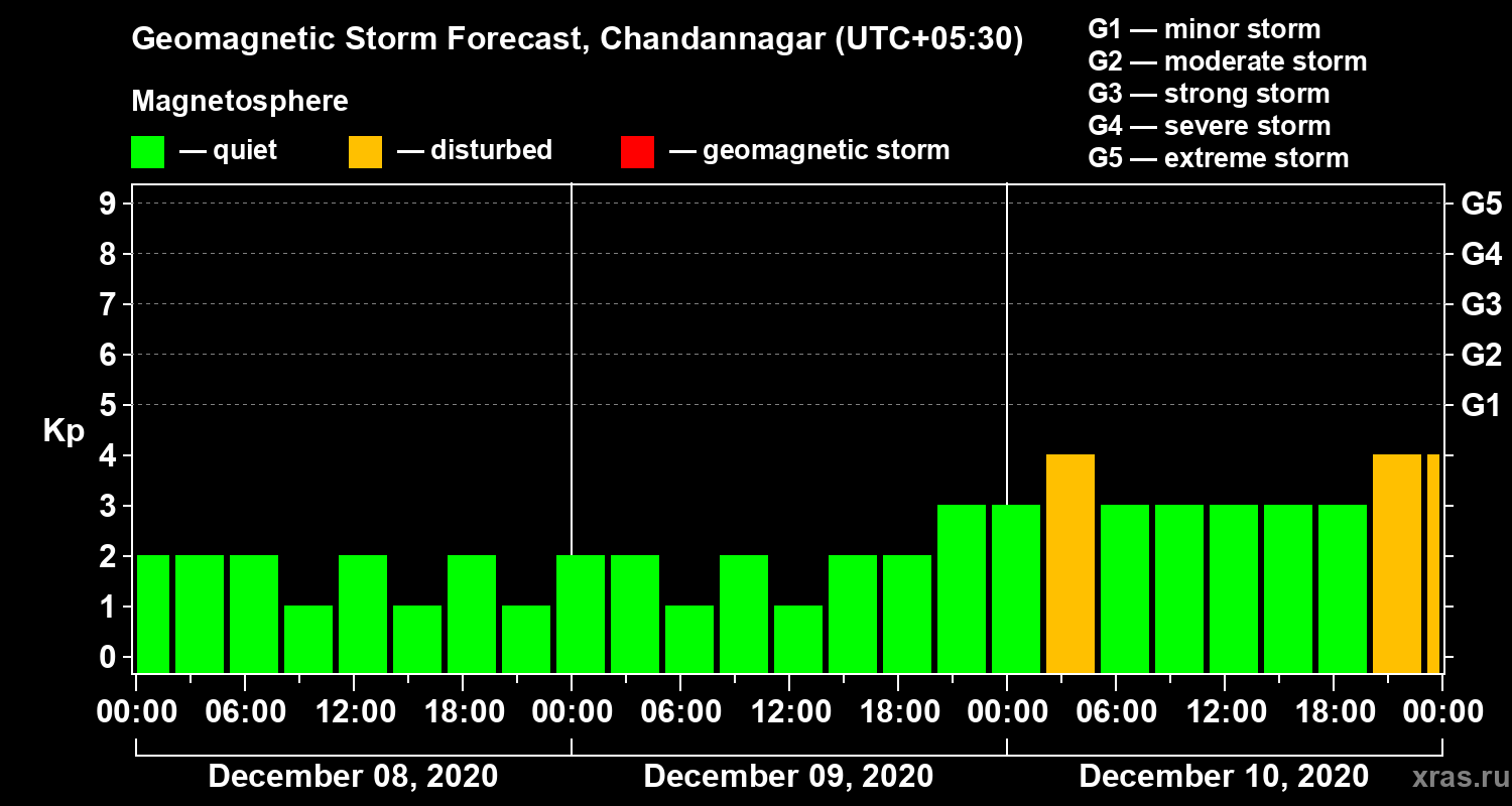 Geomagnetic storm forecast in Chandannagar for Dec 08, 2020