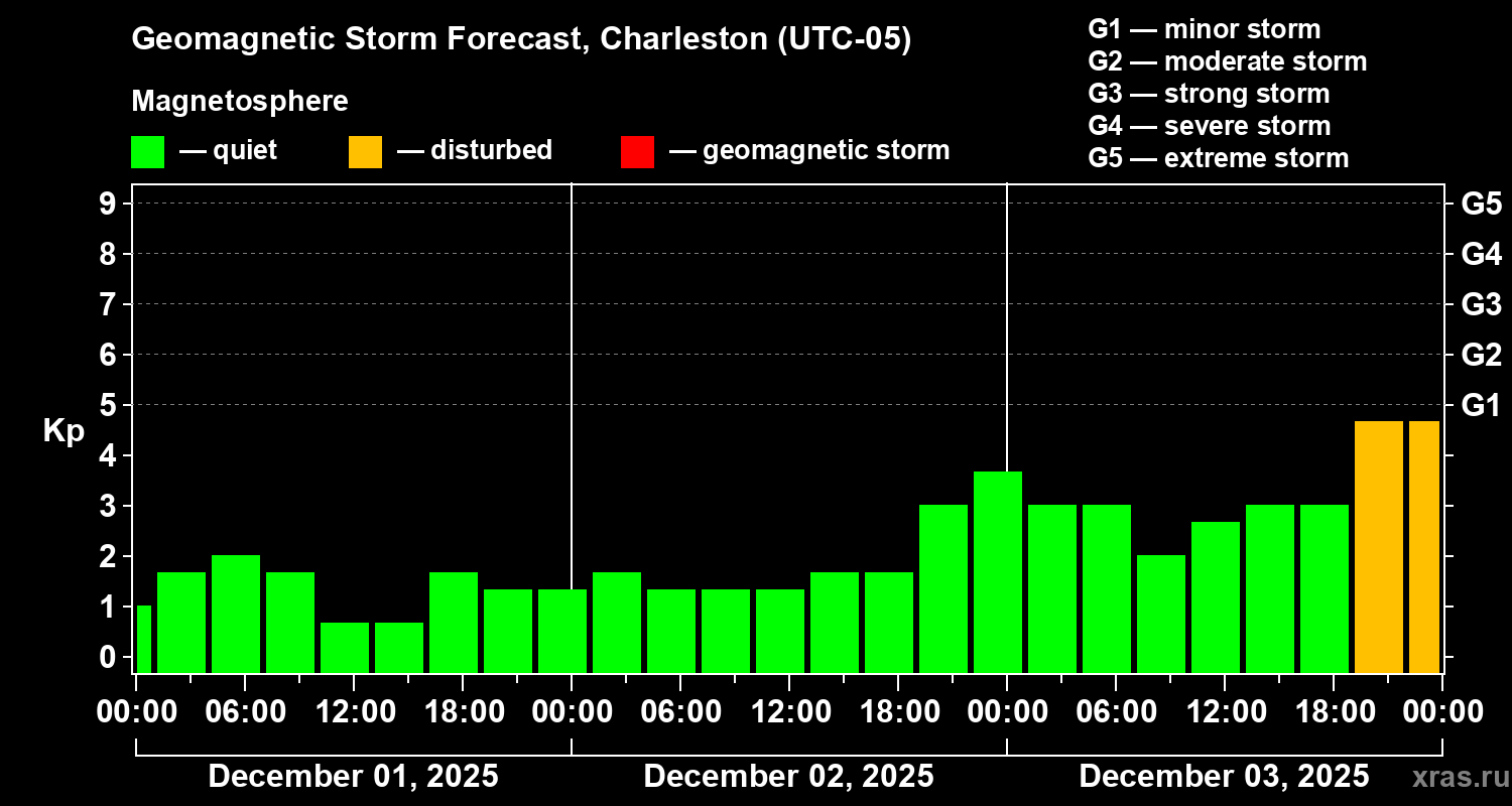 Geomagnetic storm forecast in Charleston for Dec 01, 2025