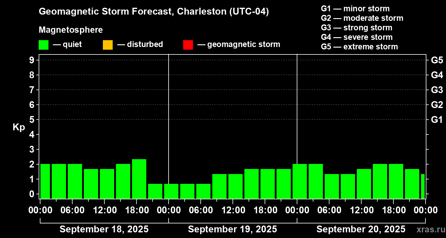 Geomagnetic storm forecast in Charleston for Sep 18, 2025