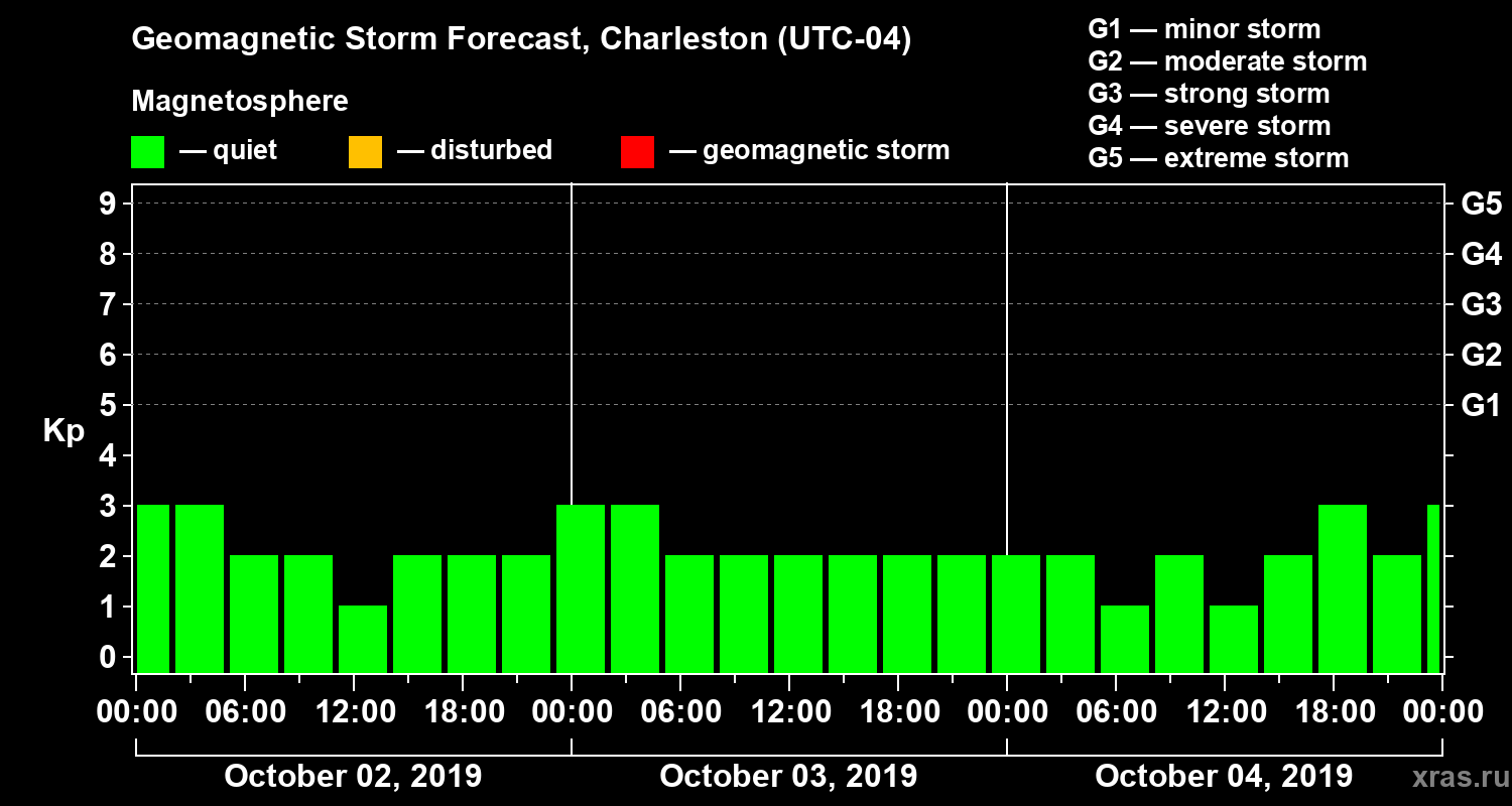 Geomagnetic storm forecast in Charleston for Oct 02, 2019