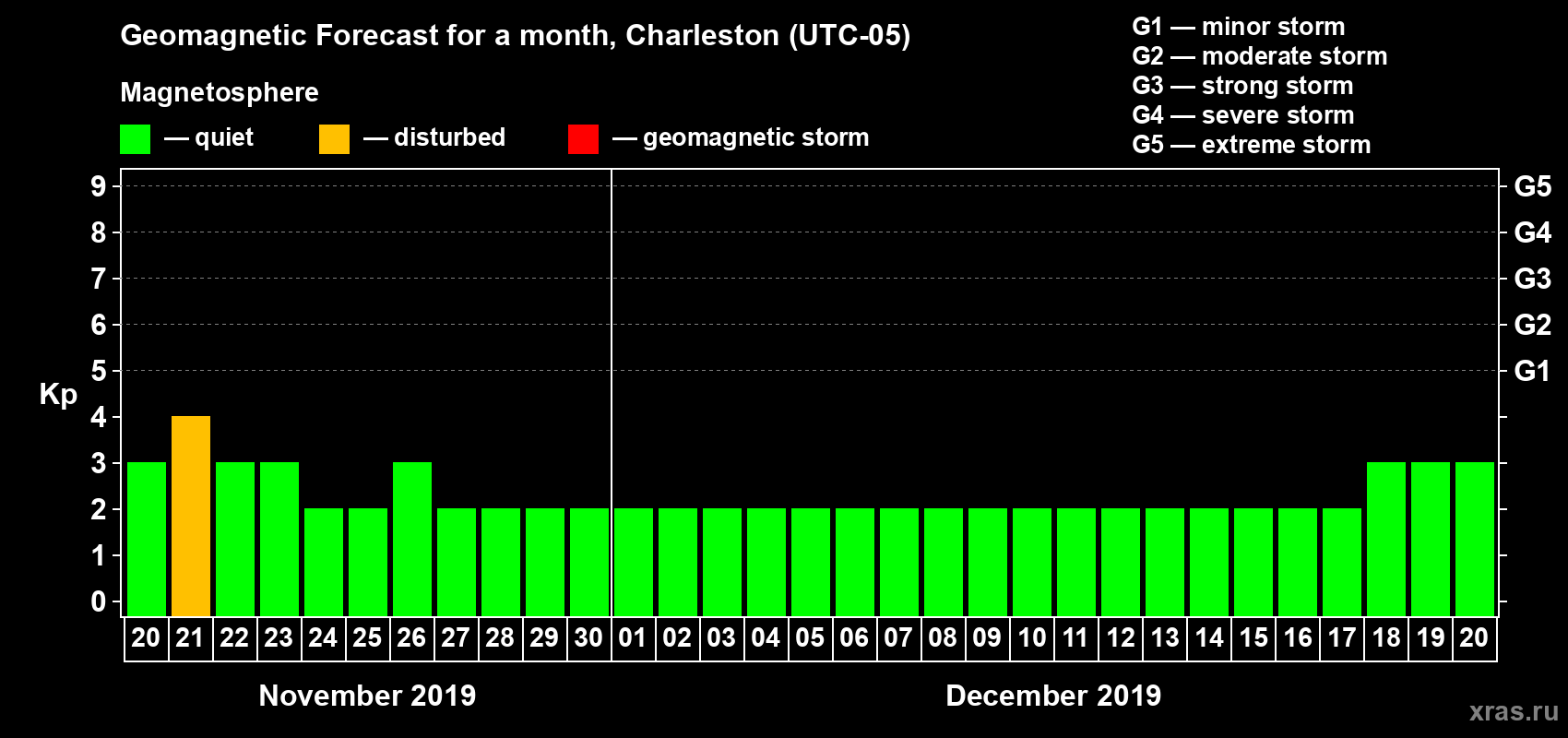 Geomagnetic storm forecast in Charleston for Nov 20, 2019