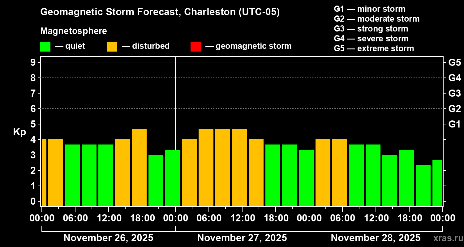 Geomagnetic storm forecast in Charleston for Nov 26, 2025