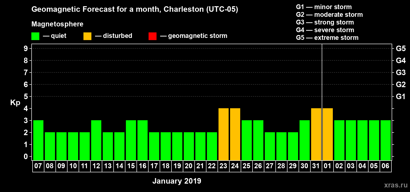 Geomagnetic storm forecast in Charleston for Jan 07, 2019