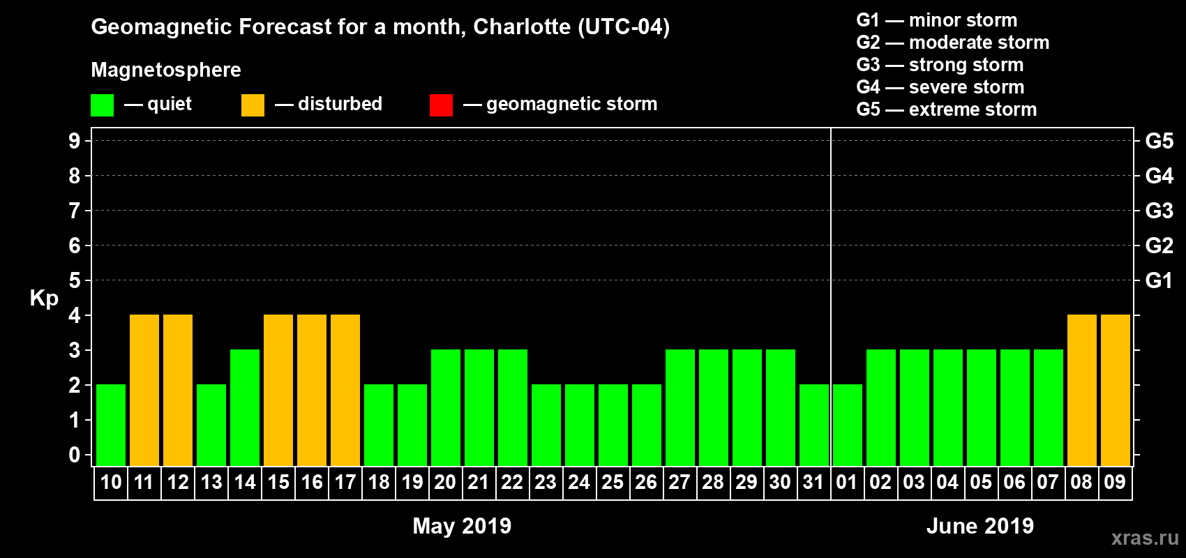 Geomagnetic storm forecast in Charlotte for May 10, 2019
