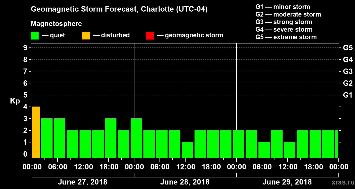 Geomagnetic storm forecast in Charlotte for Jun 27, 2018