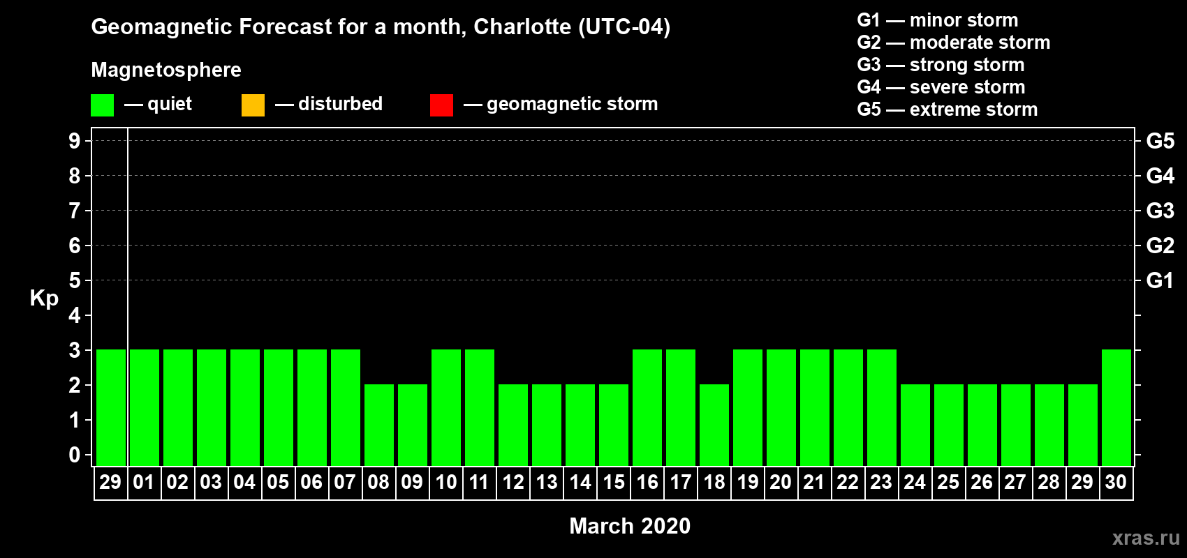 Geomagnetic storm forecast in Charlotte for Feb 29, 2020