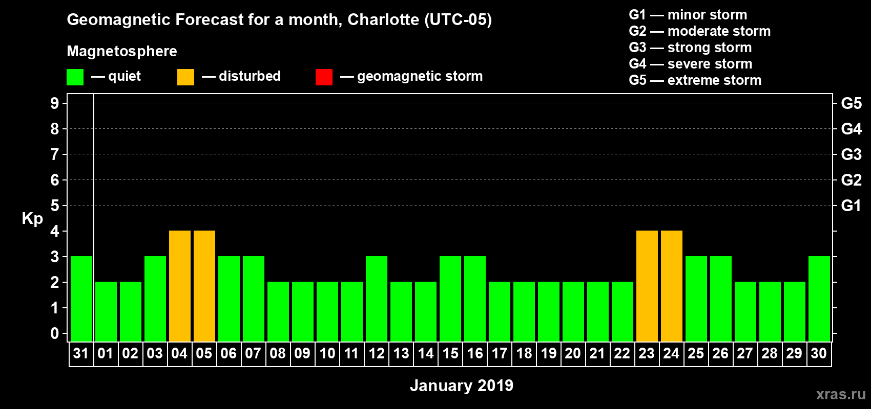 Geomagnetic storm forecast in Charlotte for Dec 31, 2018