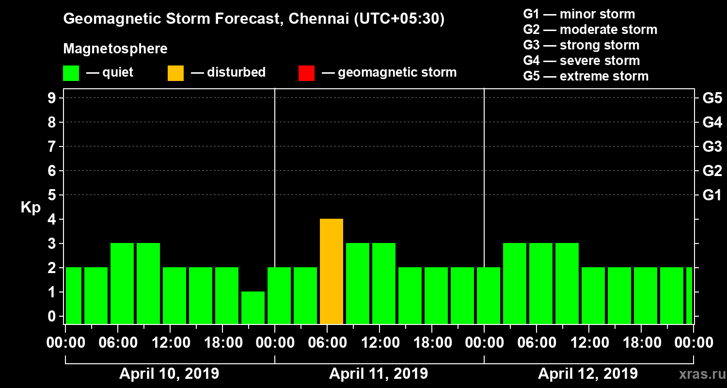 Geomagnetic activity forecast in Chennai — Apr 10, 2019