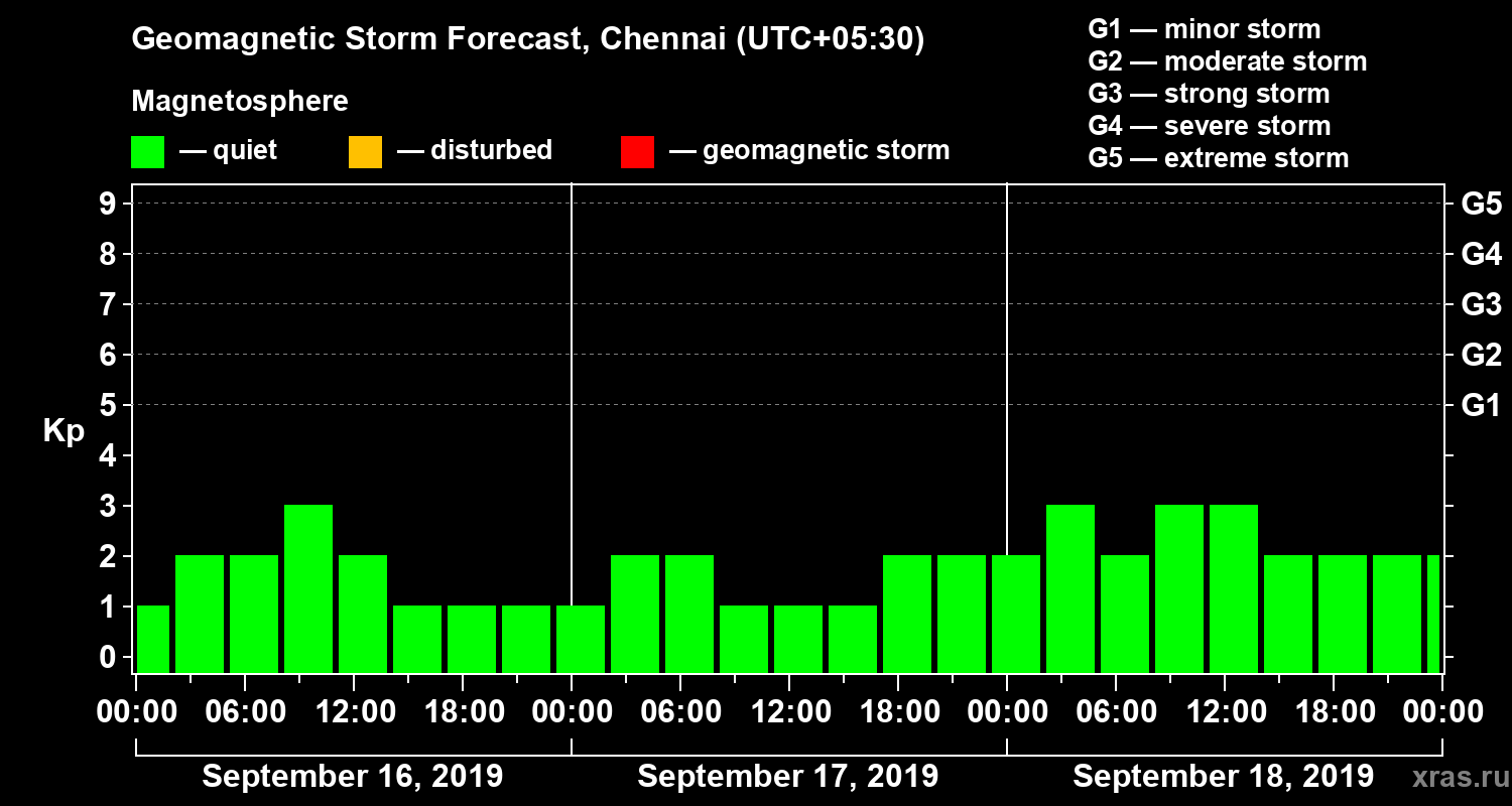 Geomagnetic activity forecast in Chennai — Sep 16, 2019
