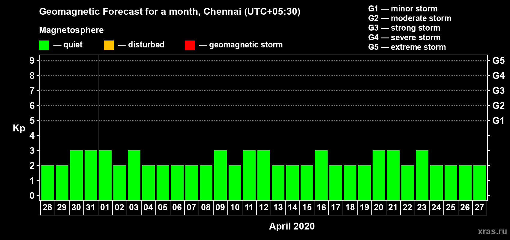 Geomagnetic activity forecast in Chennai — Mar 28, 2020
