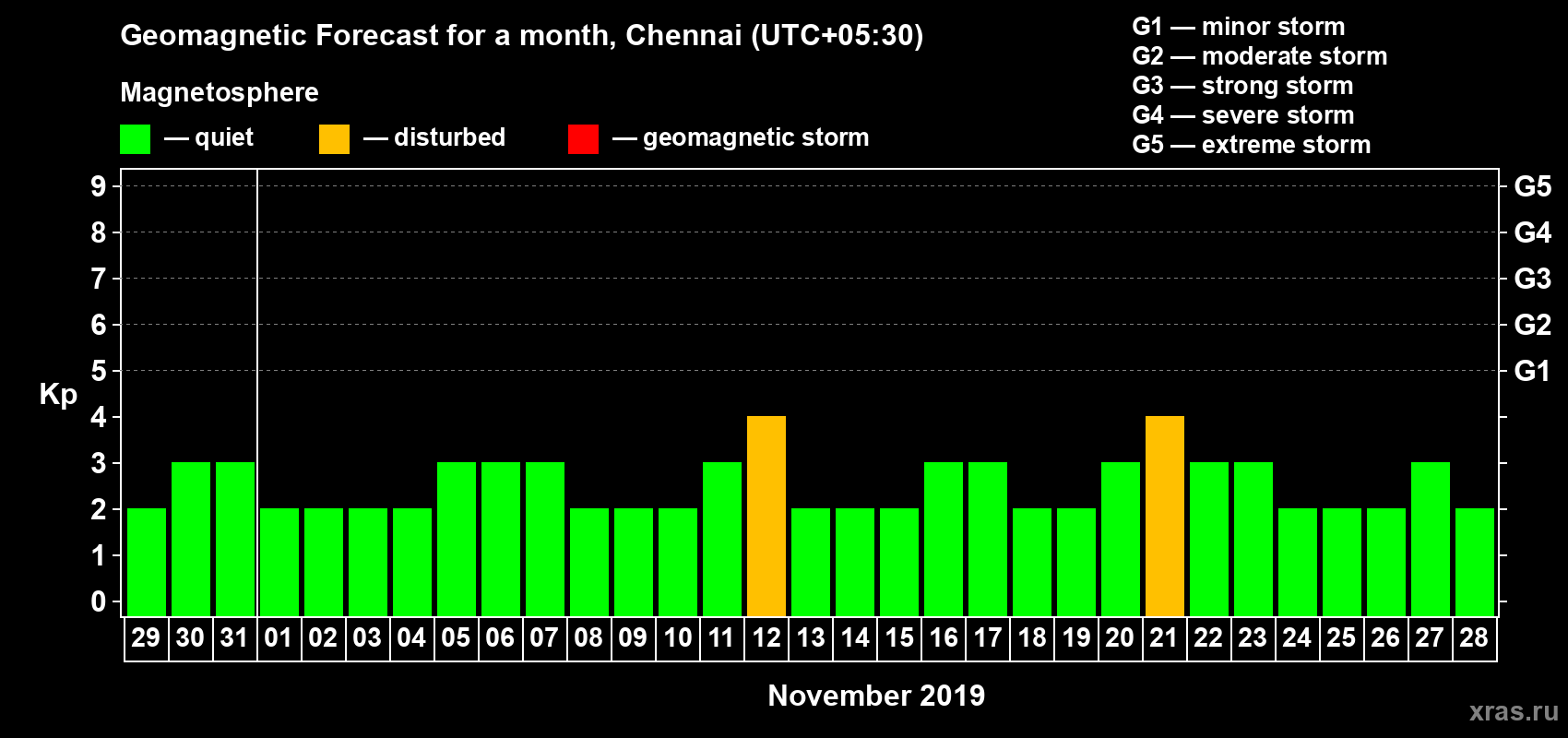 Geomagnetic activity forecast in Chennai — Oct 29, 2019