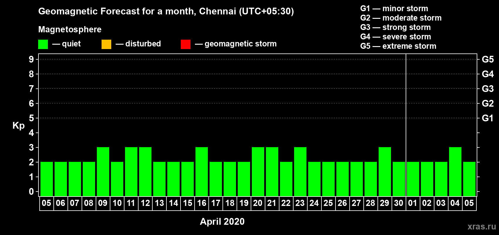 Geomagnetic storm forecast in Chennai for Apr 05, 2020