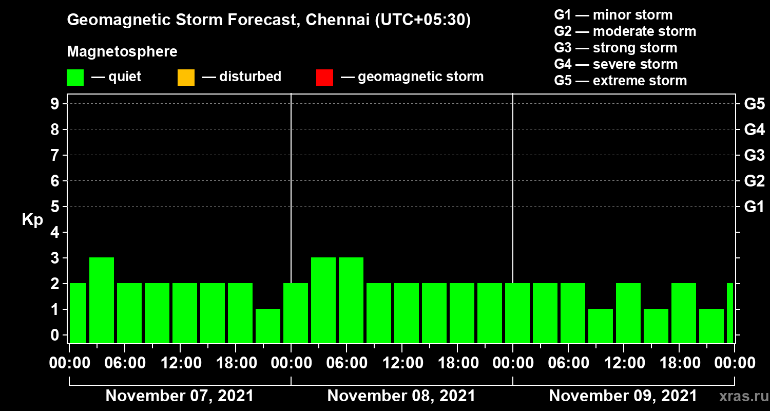 Geomagnetic activity forecast in Chennai — Nov 07, 2021