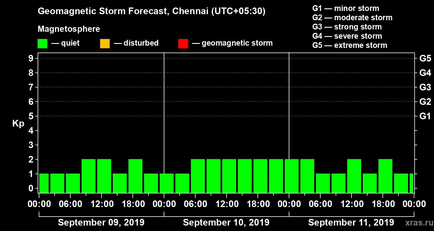Geomagnetic activity forecast in Chennai — Sep 09, 2019