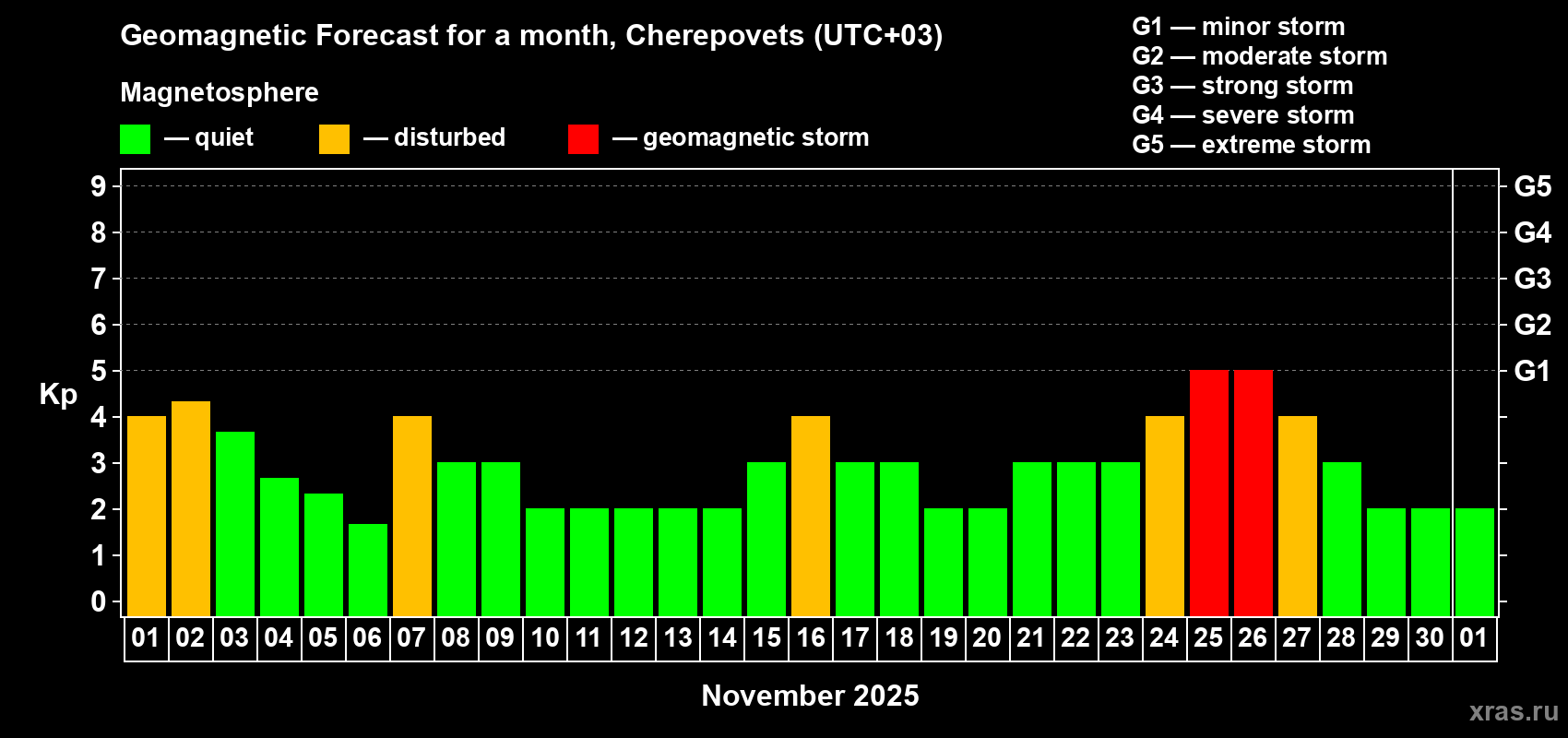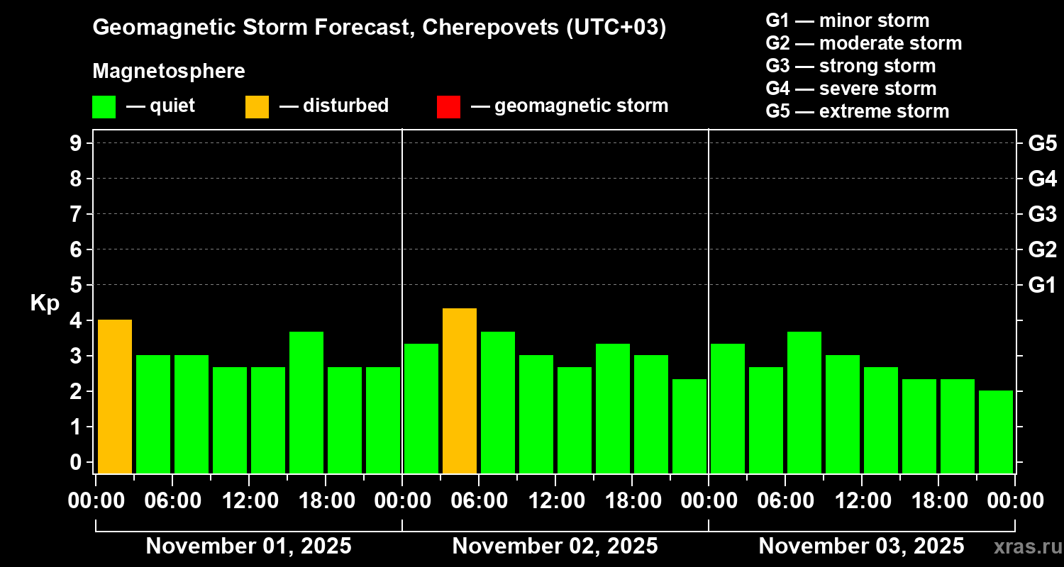 Geomagnetic storm forecast in Cherepovets for Nov 01, 2025