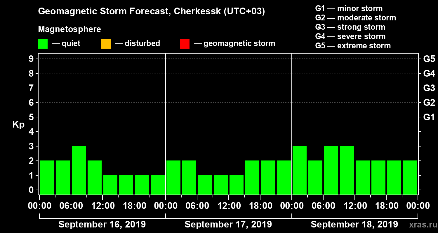 Geomagnetic storm forecast in Cherkessk for Sep 16, 2019
