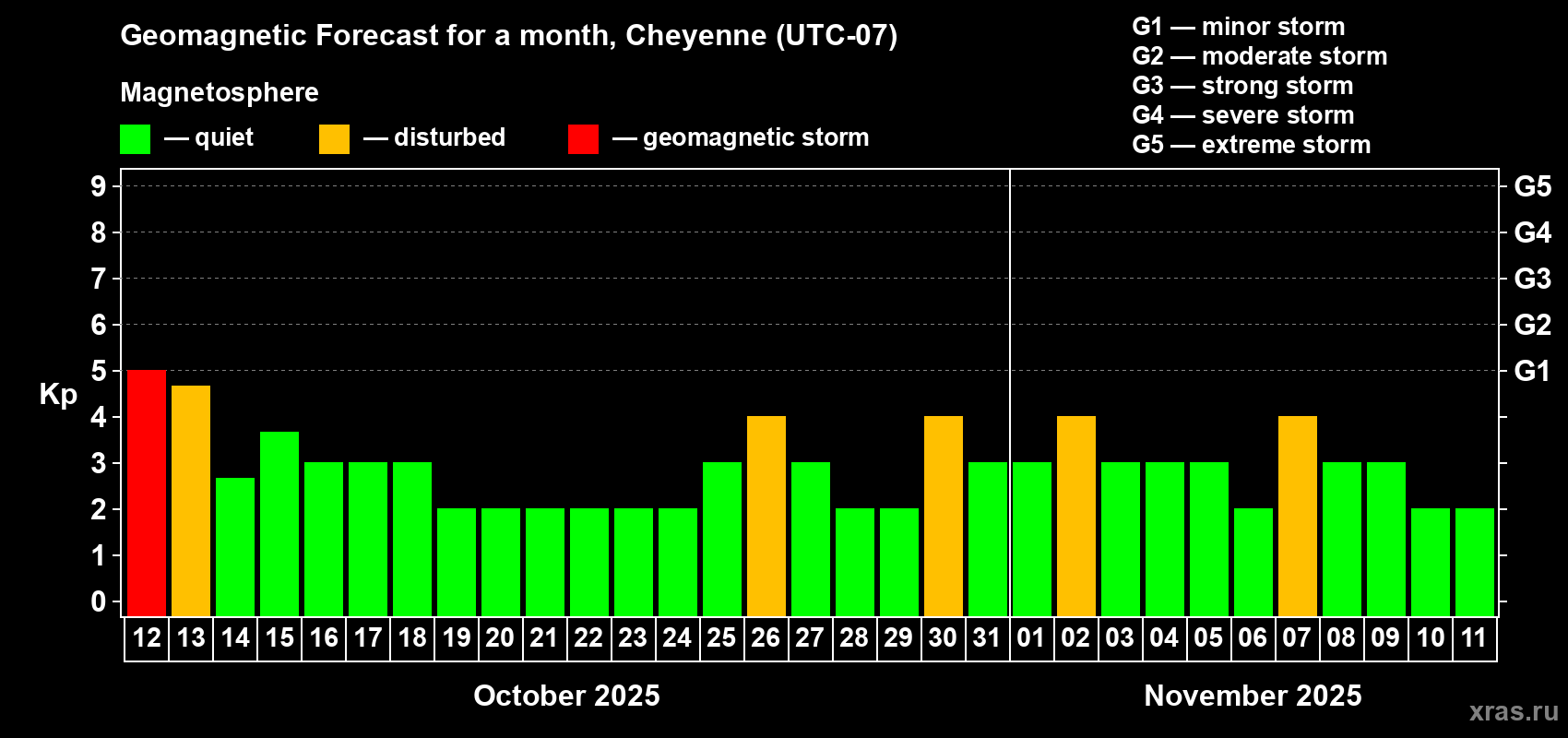 Geomagnetic storm forecast in Cheyenne for Oct 12, 2025