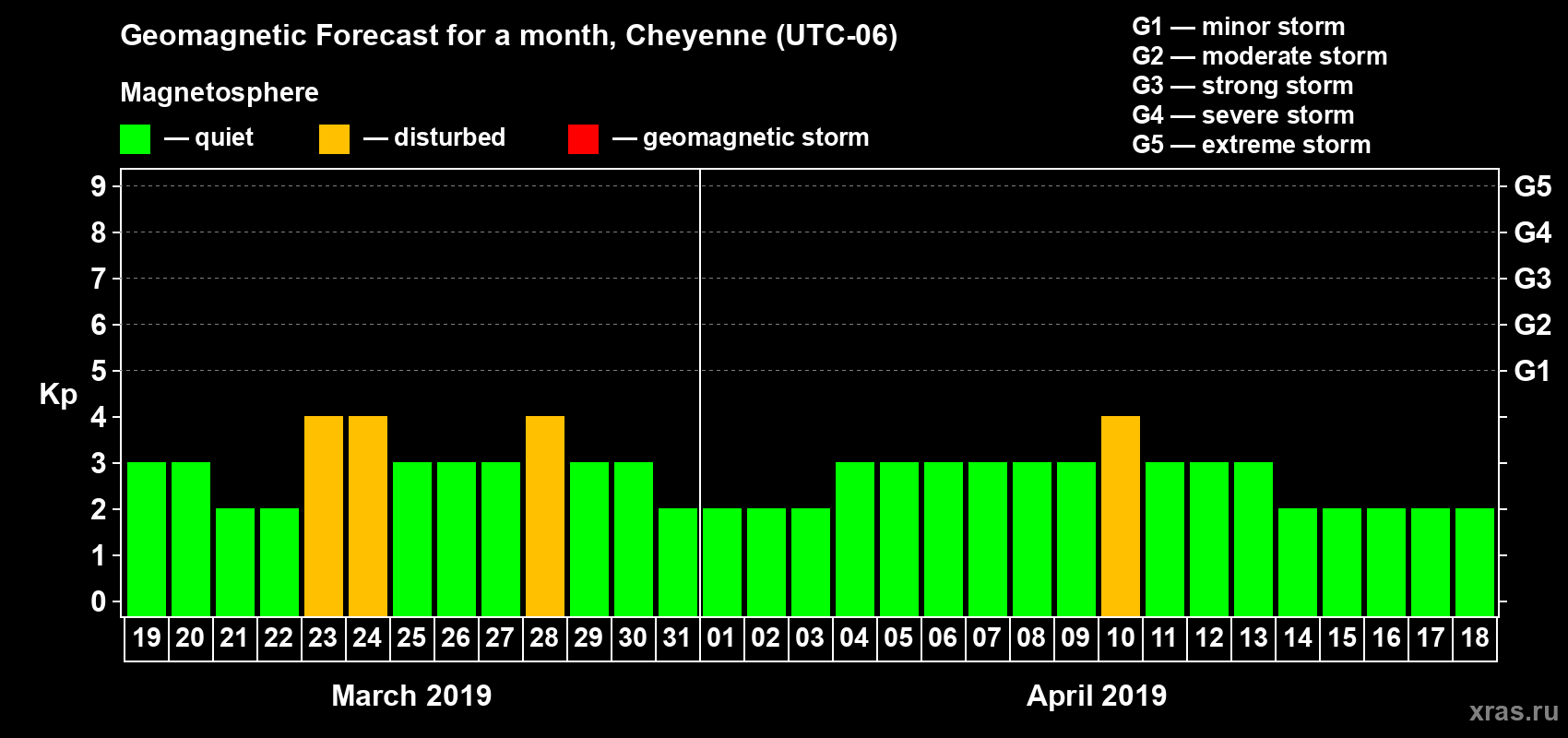 Geomagnetic storm forecast in Cheyenne for Mar 19, 2019