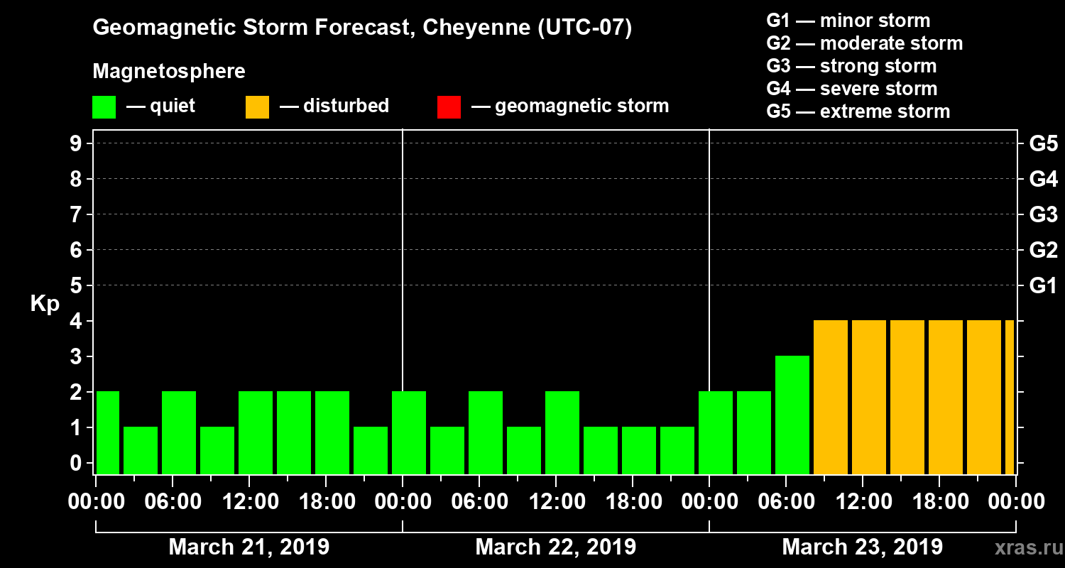 Geomagnetic storm forecast in Cheyenne for Mar 21, 2019