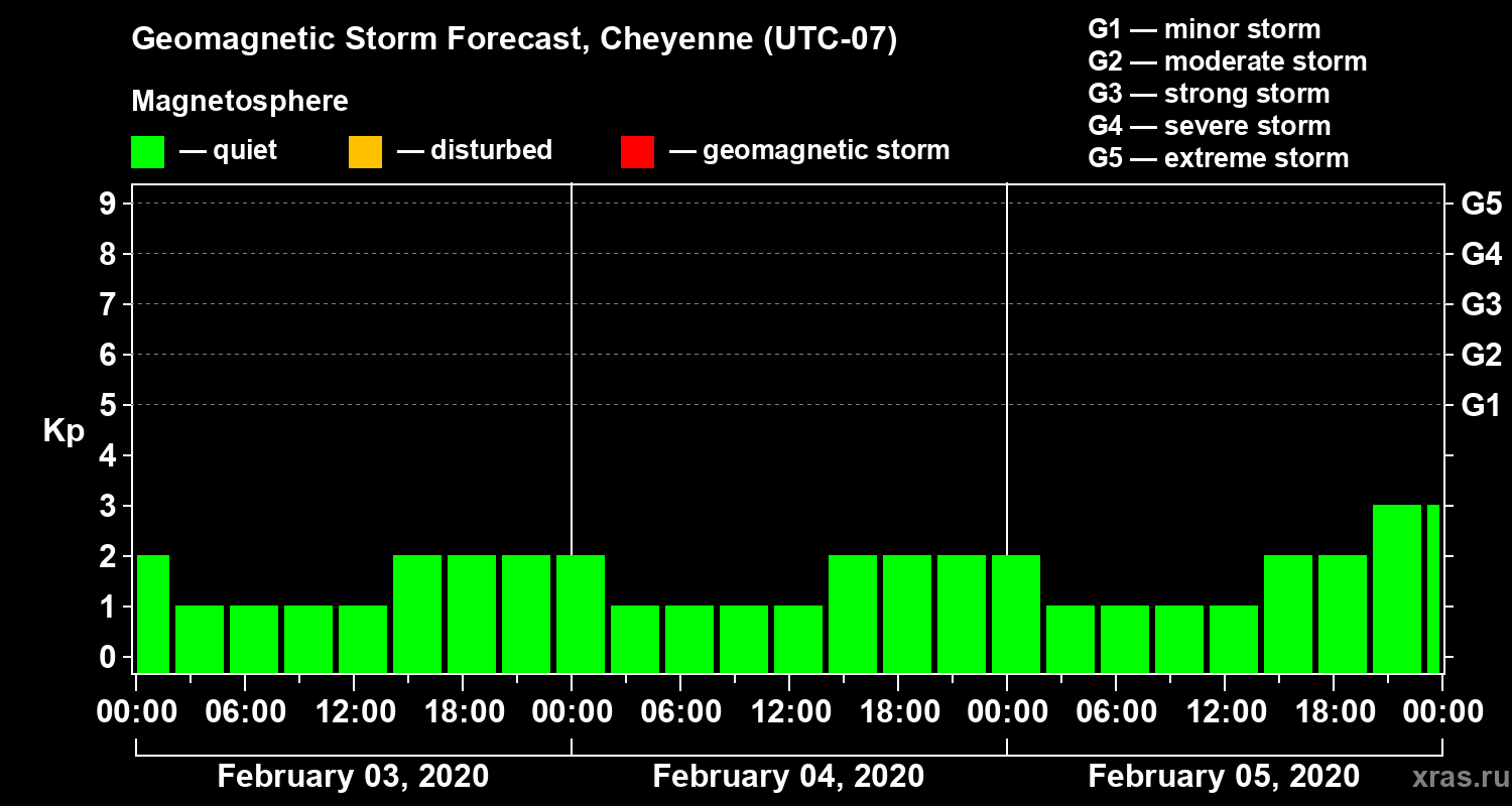 Geomagnetic storm forecast in Cheyenne for Feb 03, 2020