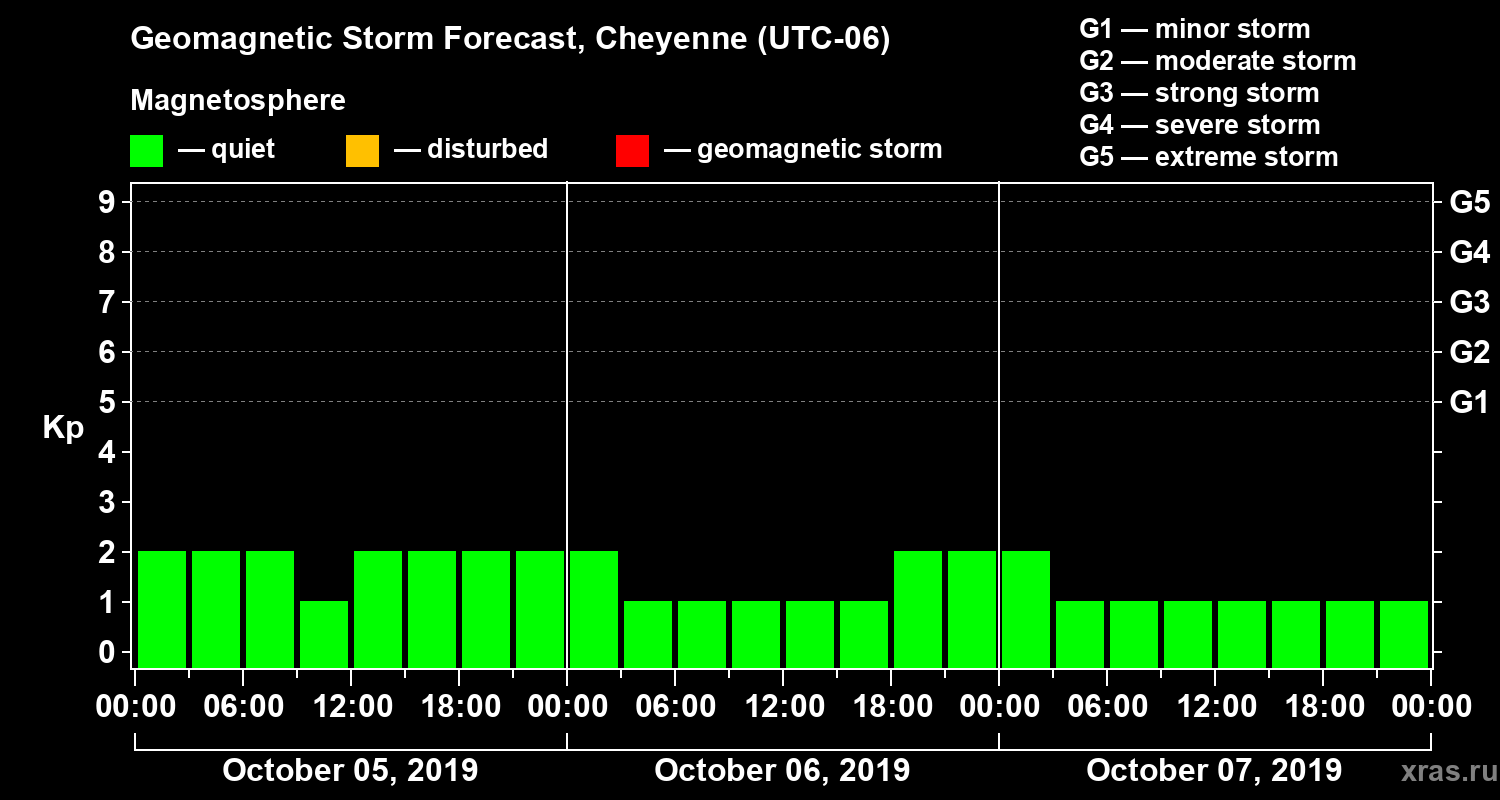 Geomagnetic storm forecast in Cheyenne for Oct 05, 2019