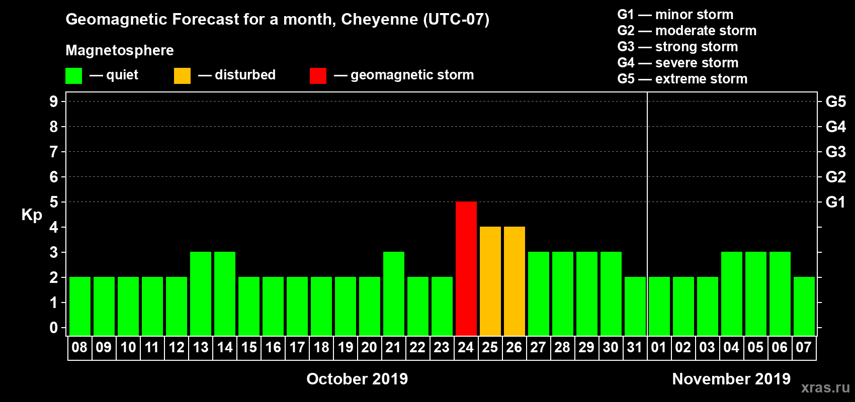 Geomagnetic storm forecast in Cheyenne for Oct 08, 2019