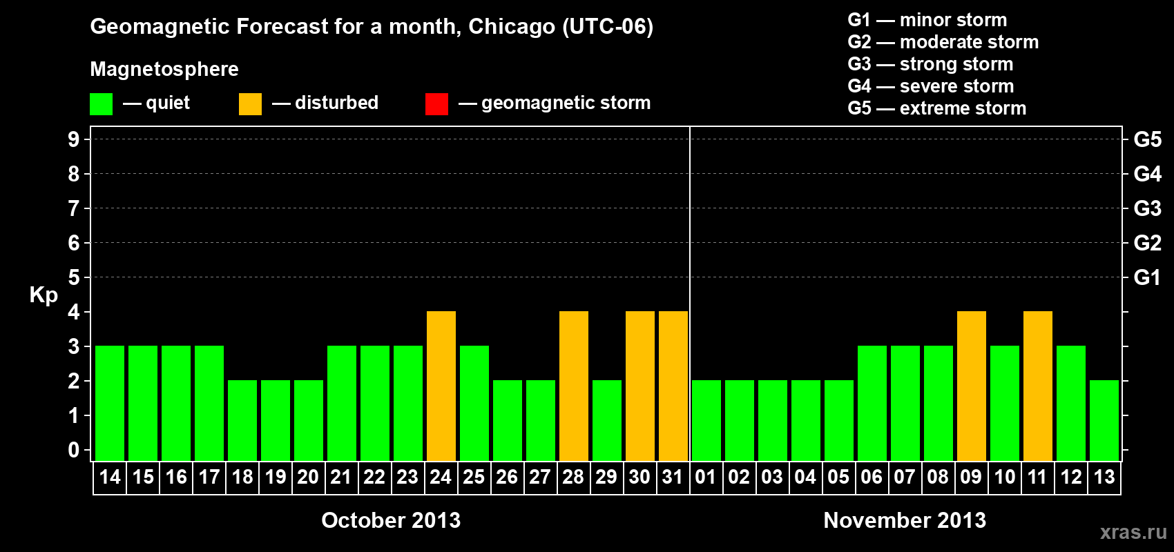 Geomagnetic storm forecast in Chicago for Oct 14, 2013