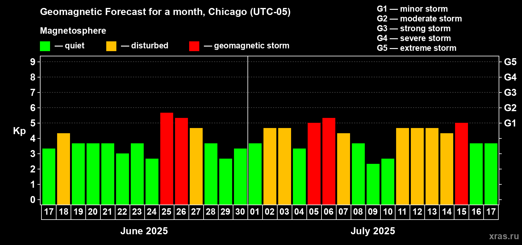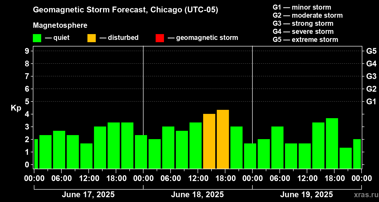 Geomagnetic storm forecast in Chicago for Jun 17, 2025