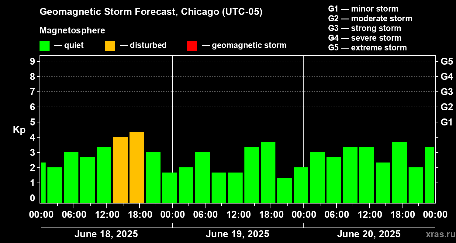 Geomagnetic storm forecast in Chicago for Jun 18, 2025