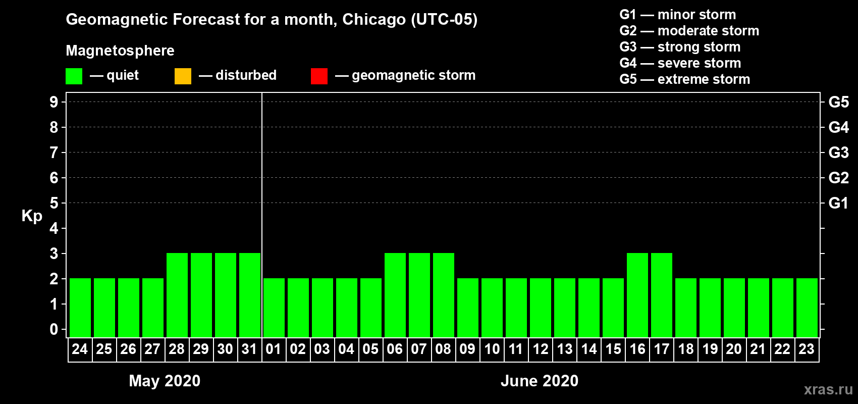 Geomagnetic storm forecast in Chicago for May 24, 2020