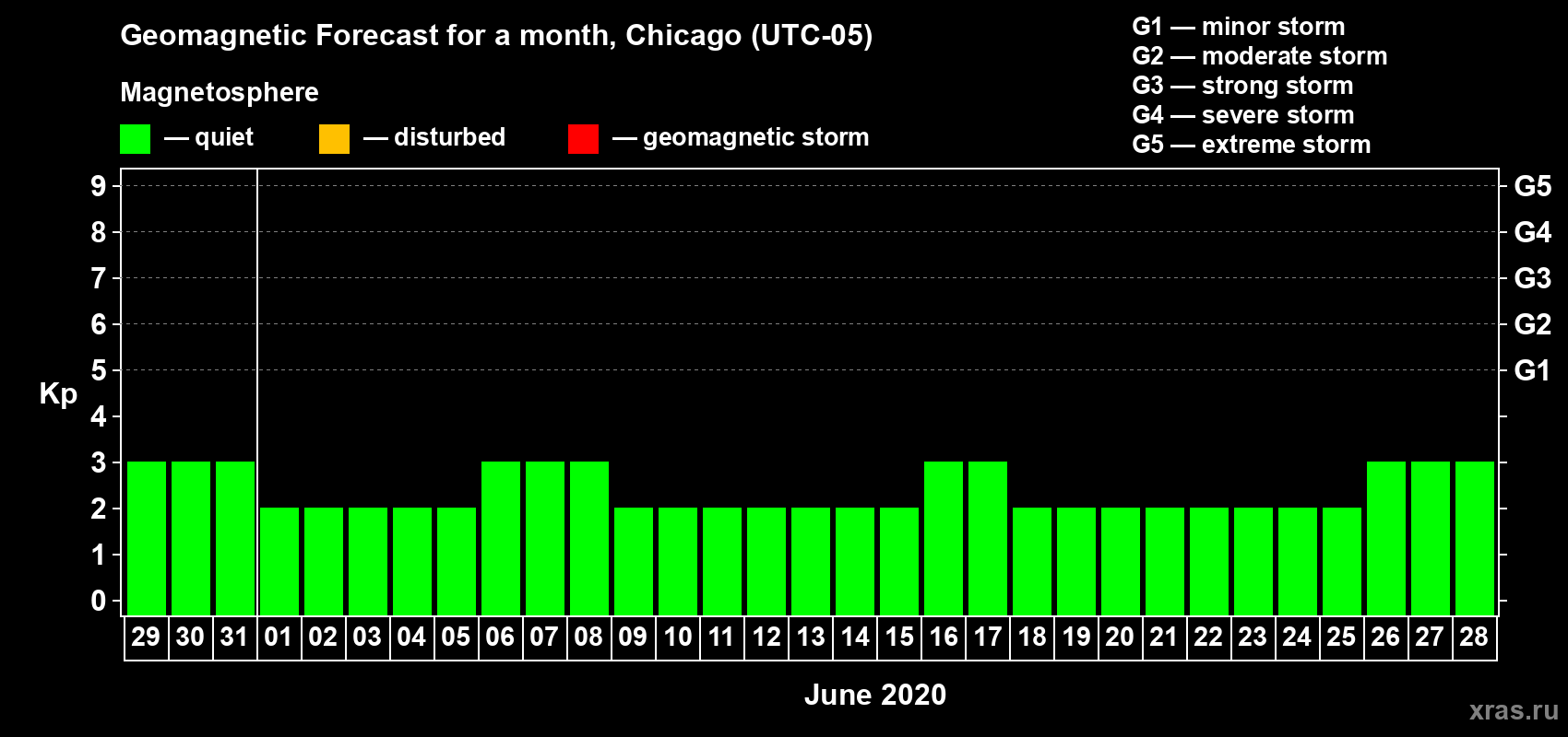 Geomagnetic storm forecast in Chicago for May 29, 2020
