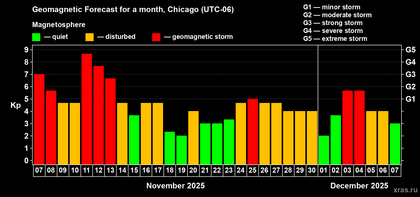 Geomagnetic storm forecast in Chicago for Nov 07, 2025