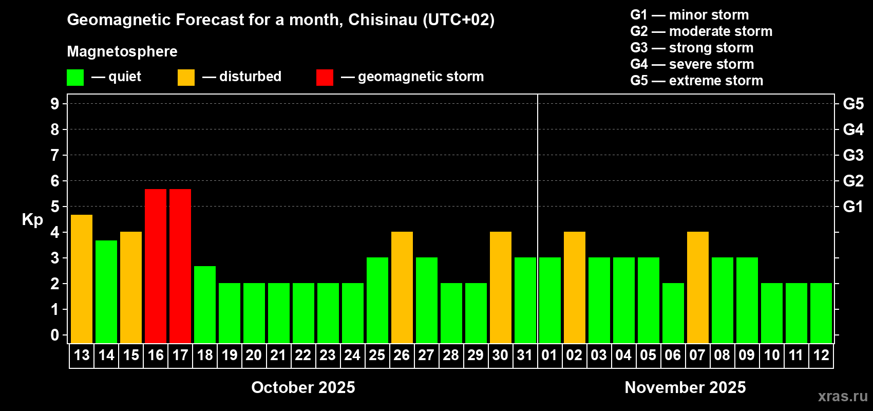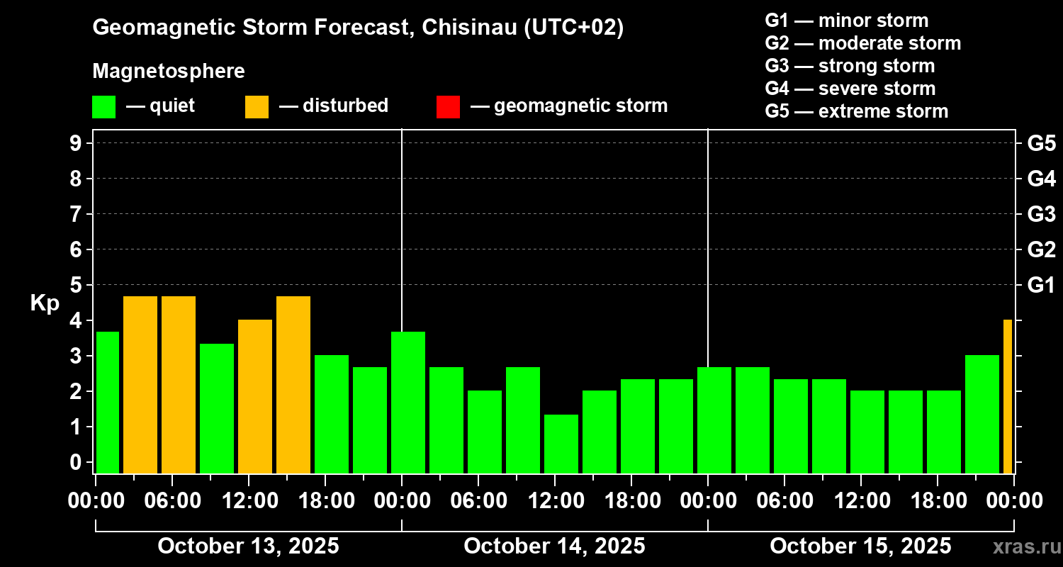 Geomagnetic storm forecast in Chisinau for Oct 13, 2025