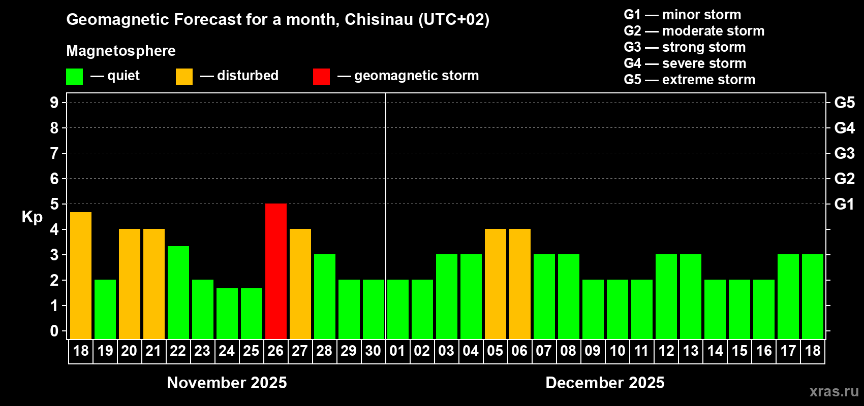 Geomagnetic storm forecast in Chisinau for Nov 18, 2025