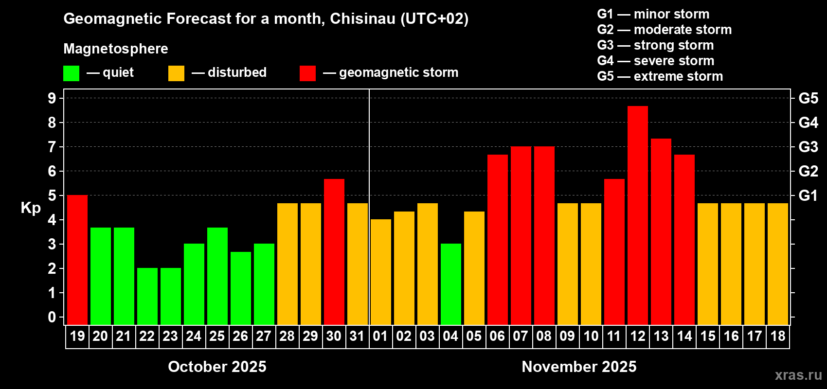 Geomagnetic storm forecast in Chisinau for Oct 19, 2025