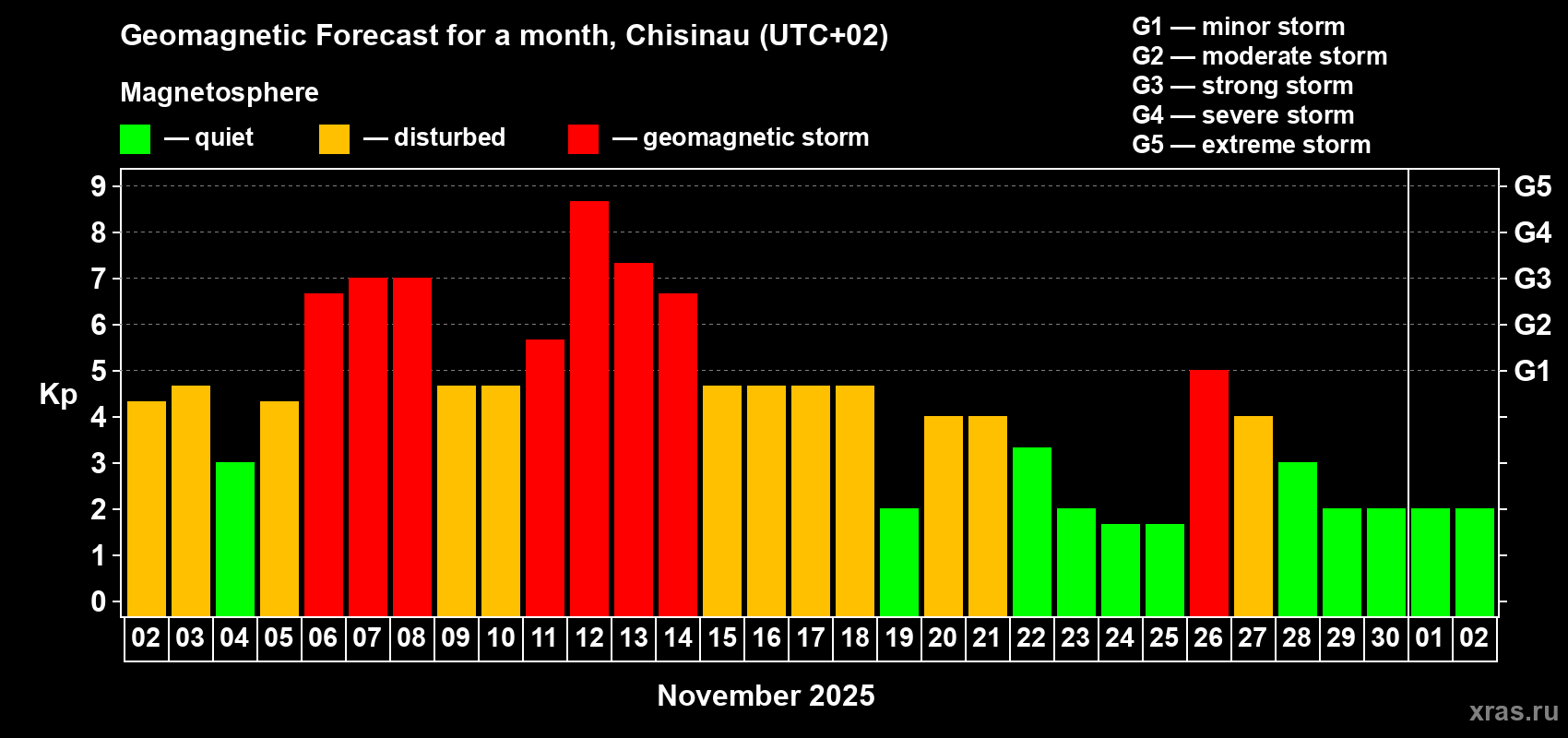 Geomagnetic storm forecast in Chisinau for Nov 02, 2025