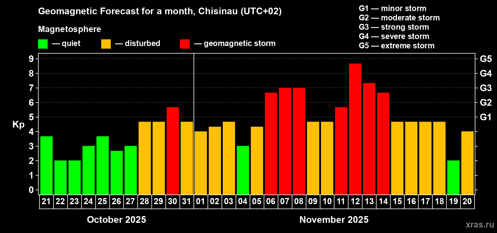 Geomagnetic storm forecast in Chisinau for Oct 21, 2025