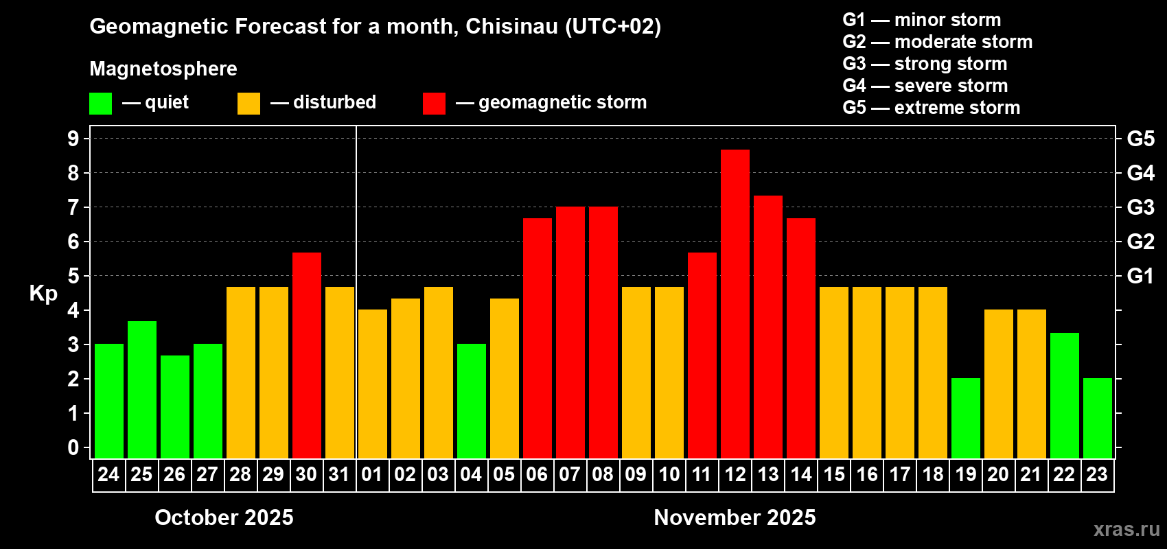 Geomagnetic storm forecast in Chisinau for Oct 24, 2025
