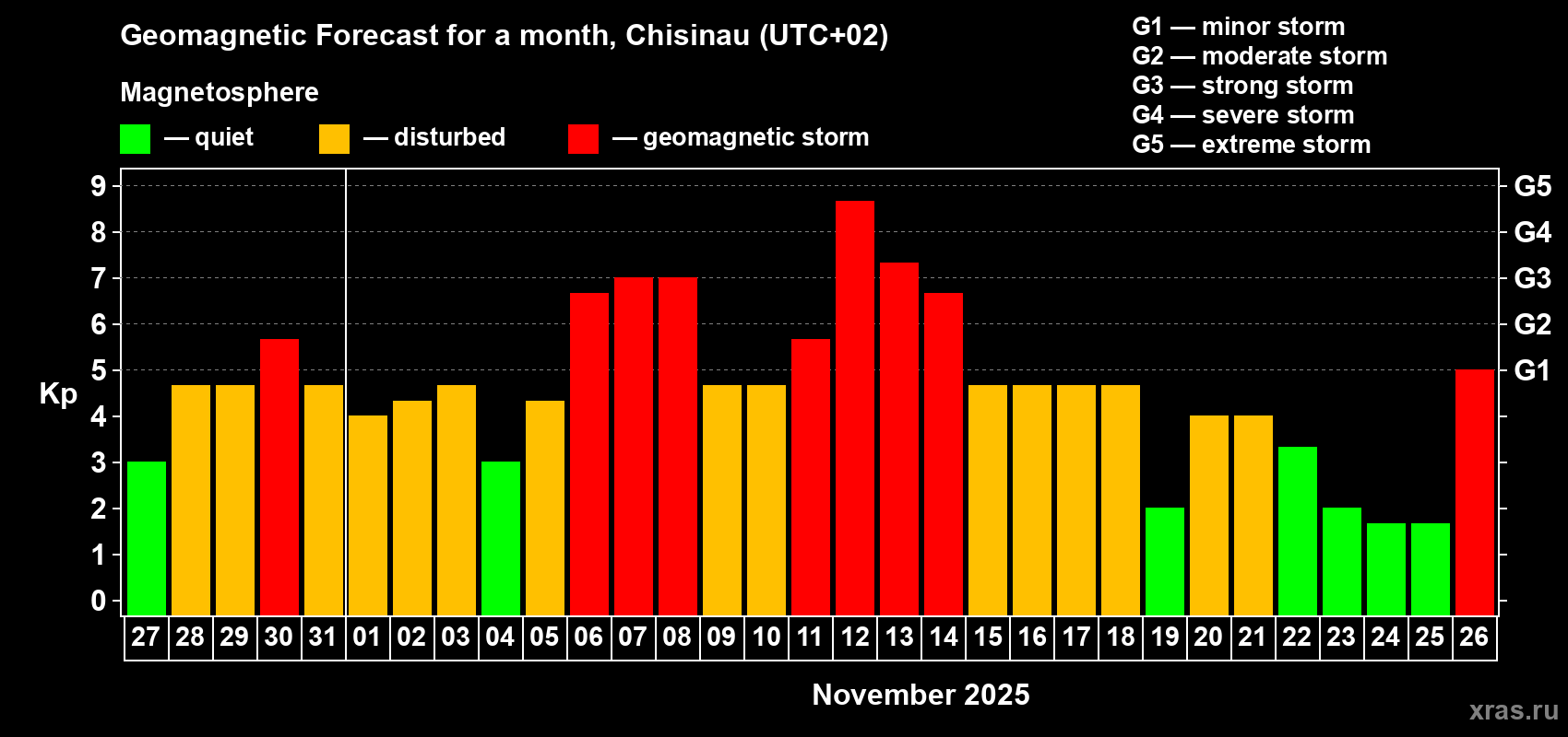 Geomagnetic storm forecast in Chisinau for Oct 27, 2025