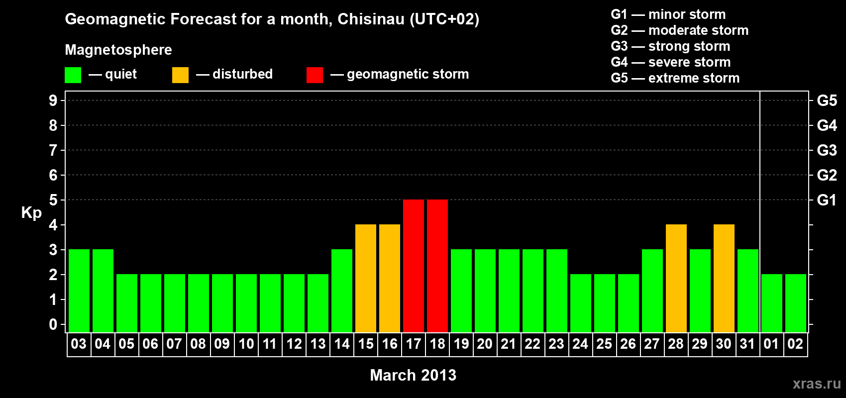 Geomagnetic storm forecast in Chisinau for Mar 03, 2013