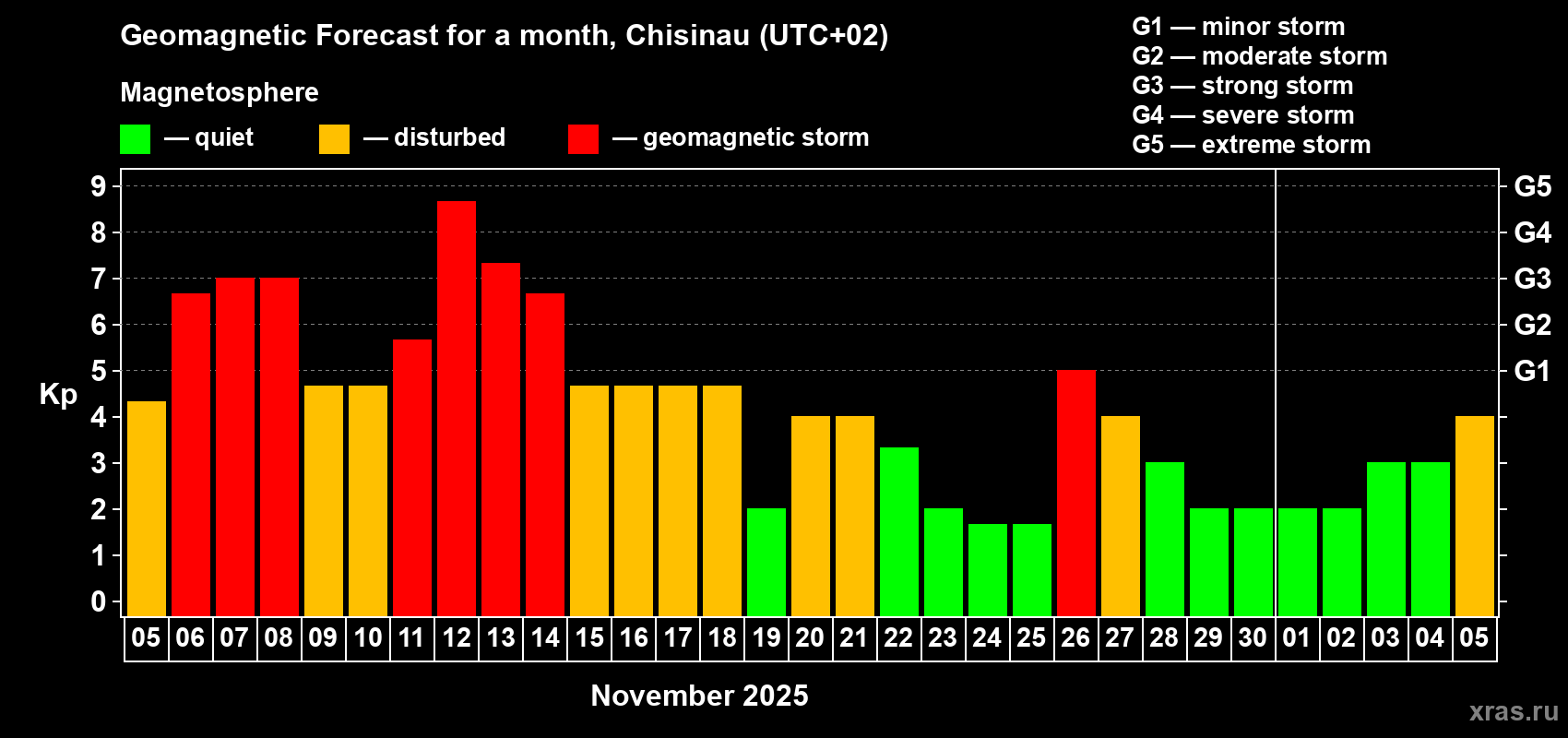 Geomagnetic storm forecast in Chisinau for Nov 05, 2025