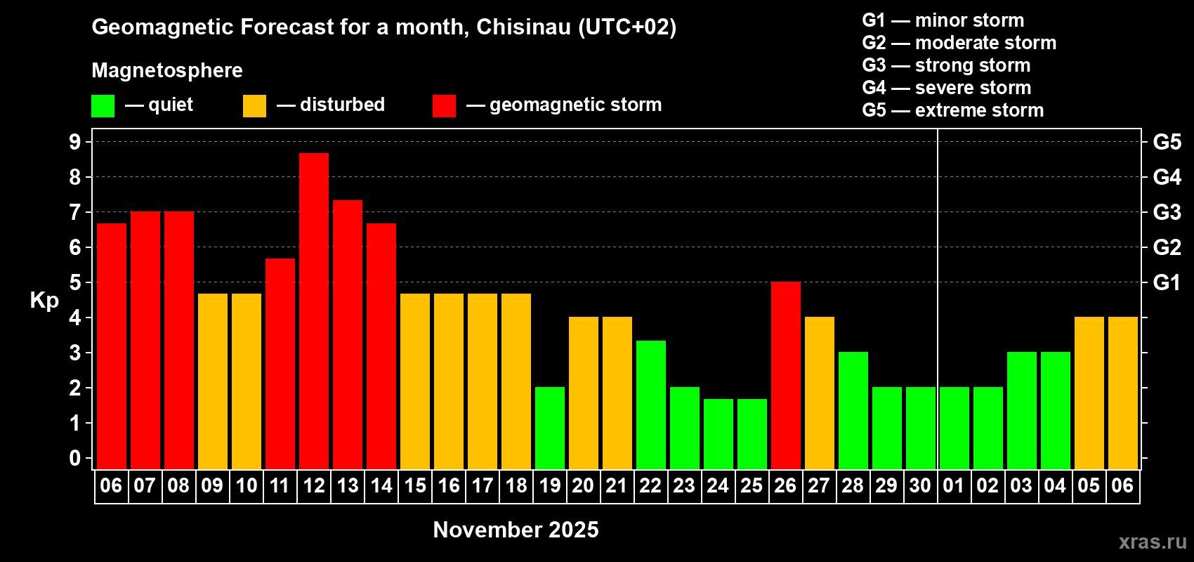 Geomagnetic storm forecast in Chisinau for Nov 06, 2025