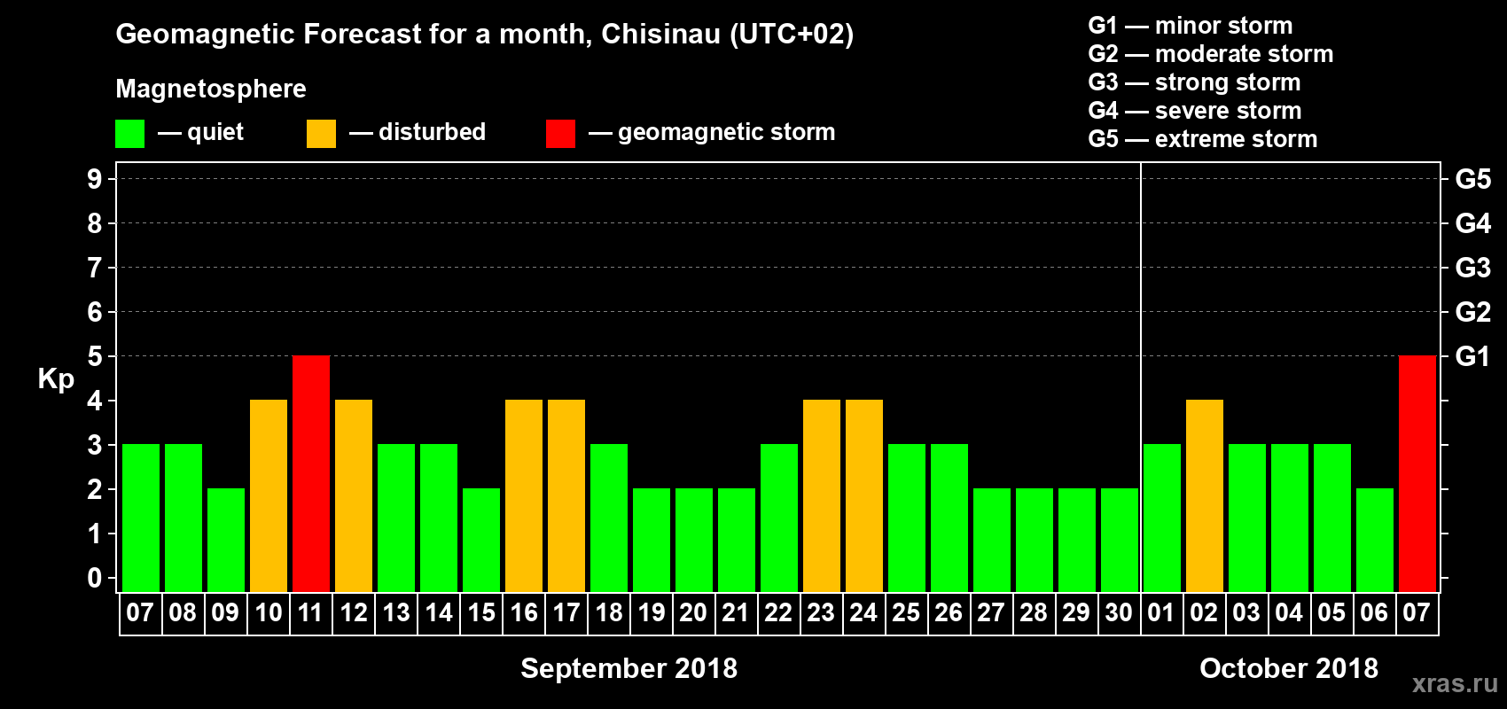 Geomagnetic storm forecast in Chisinau for Sep 07, 2018