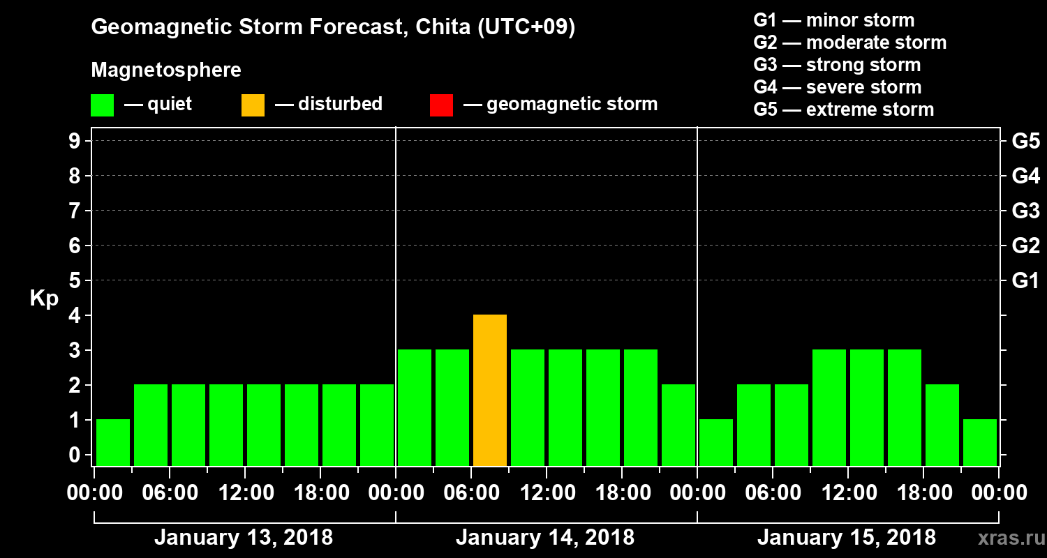 Geomagnetic storm forecast in Chita for Jan 13, 2018