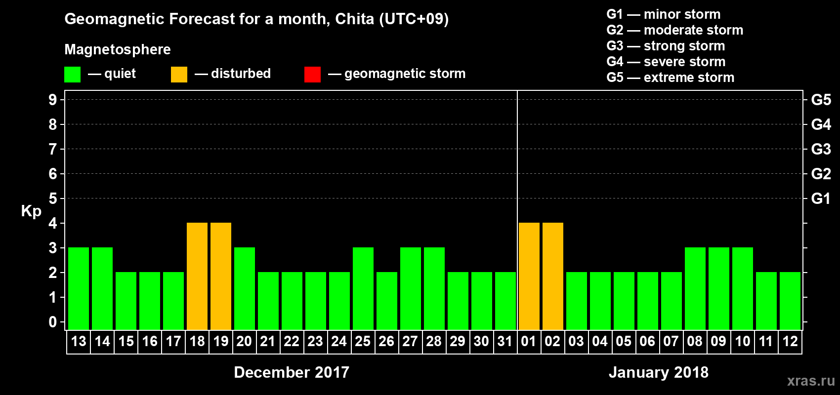 Geomagnetic storm forecast in Chita for Dec 13, 2017
