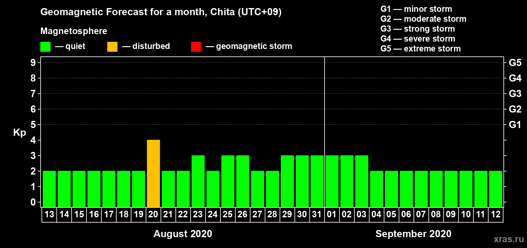 Geomagnetic storm forecast in Chita for Aug 13, 2020