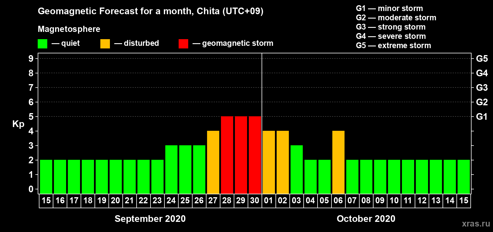 Geomagnetic storm forecast in Chita for Sep 15, 2020