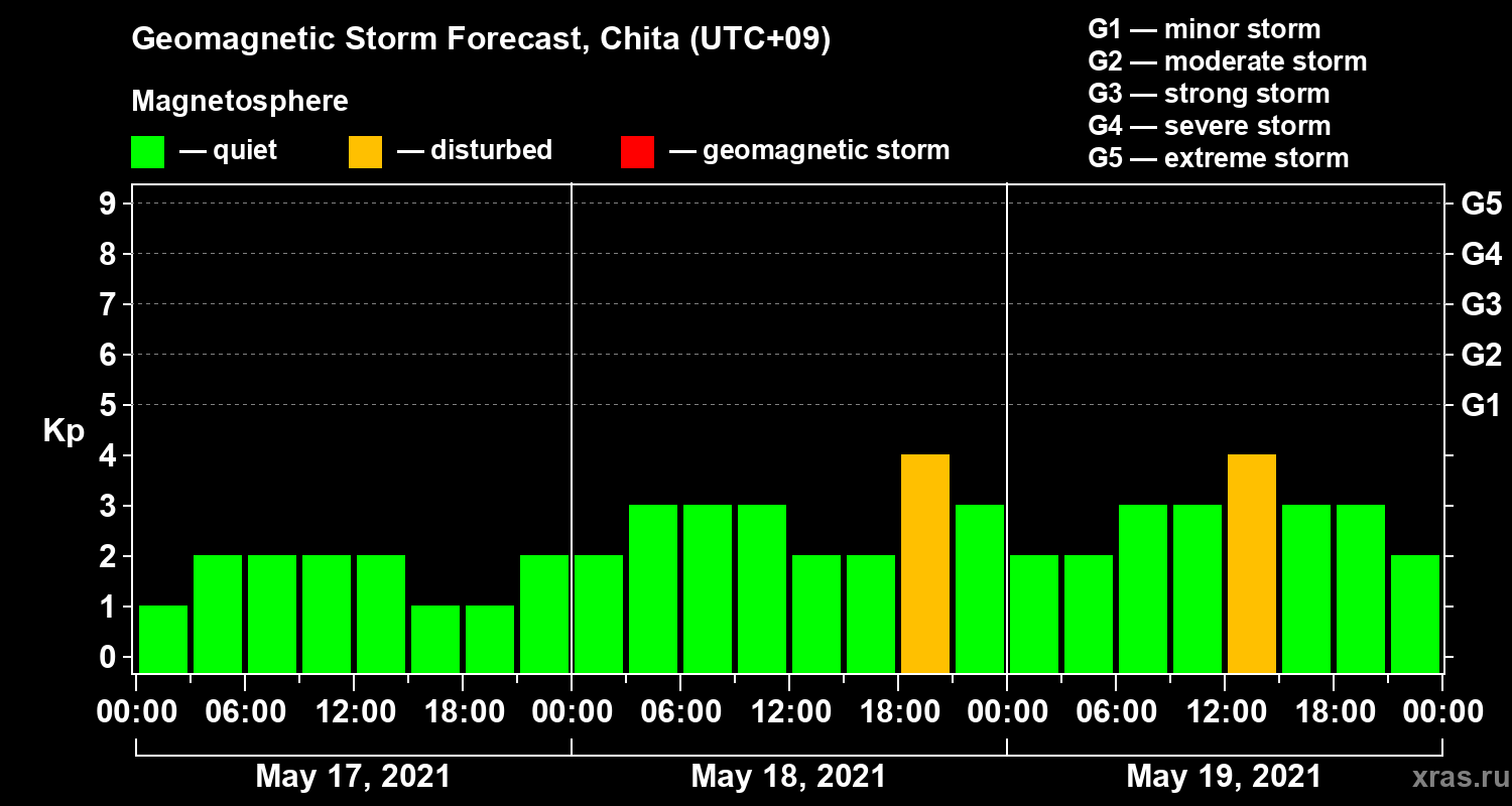 Geomagnetic activity forecast in Chita — May 17, 2021